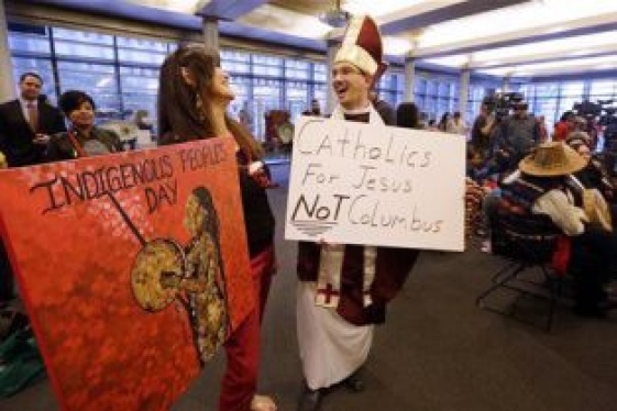 A refurbished statue of Christopher Columbus is now on display in Pueblo. The Sons of Italy unveiled the refurbished 109-year-old statue during their annual wreath-laying ceremony marking Columbus Day on Monday. KOAA-TV (http://bit.ly/1saz3ax) reported that the ceremony unfolded as protesters, some of them in Native American headdresses,...