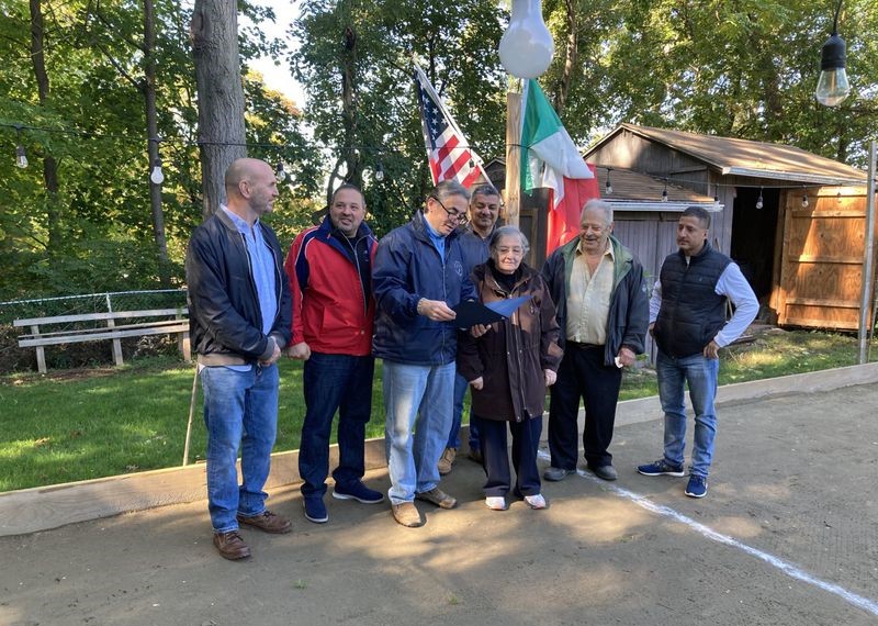 Tomasso and Anthony Mancuso, a father-and-son team who built a regulation-sized bocce court in the backyard of the elder Mancuso’s home on West Allen Ridge Road, challenged the mayor to a match and the traditional meal afterward. Sarno accepted the challenge and brought a proclamation honoring the Mancusos’ dedication to preserving the old country traditions here in America.