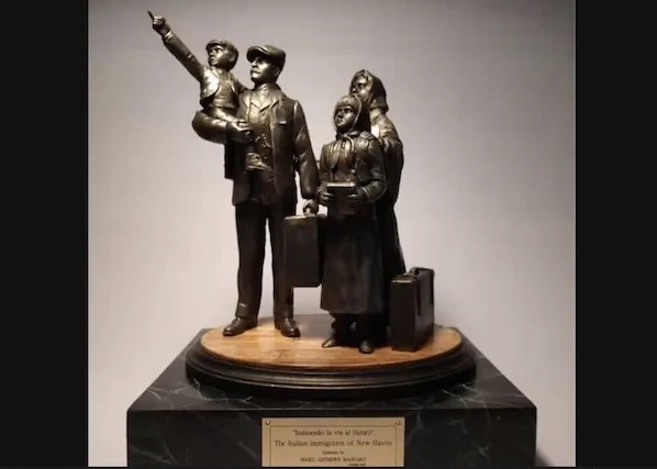 Massaro’s sculpture features an Italian immigrant family of four as they arrive in the United States. The artist grew up in Wooster Square and now runs a studio in Branford. A few dozen attended the meeting on Zoom. The vote follows a July 15 meeting in which six finalists pitched designs for the site, which sits at the Chapel Street entrance to Wooster Square and must integrate the historic stone pedestal on which Columbus stood.