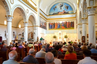 During the Mass at St. Peter Church in Portland, the bishop expressed his joy at celebrating the Mass and his wish for a good festival. Beginning his homily in Italian, which he speaks fluently, the bishop said that the celebration is an opportunity to strengthen the community by bringing families together and by providing an opportunity for members to renew and to form new friendships.