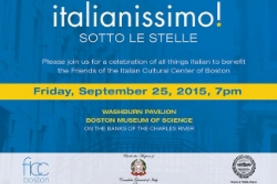 Cari tutti, dear friends,Italianissimo 2015 takes place "sotto le stelle" in the enchanting Washburn Pavilion of Boston's Museum of Science on Friday, September 25th. With a unique view of the Charles River, bordered by the skylines of Boston and Cambridge, guests will enjoy an experience reminiscent of an evening in Trastevere punctuated by evocat...