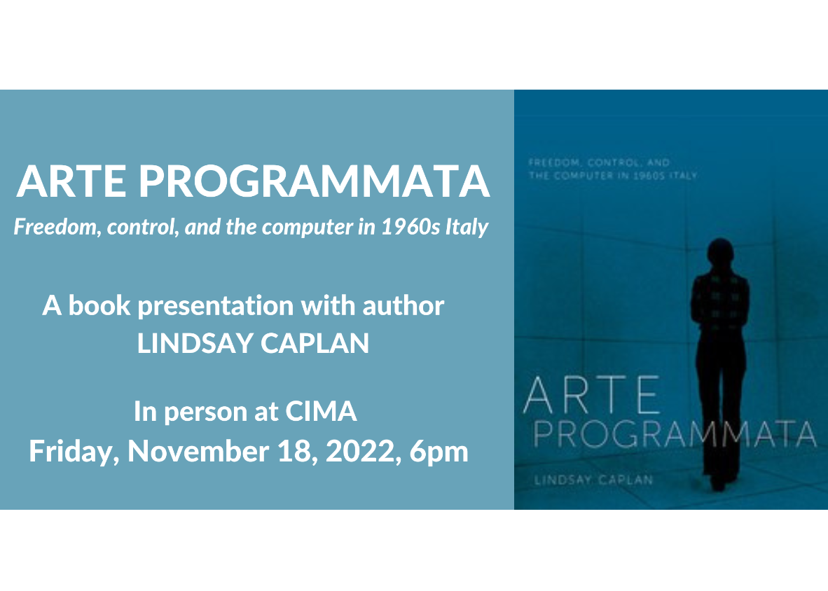 Friday, November 18, 2022, 6pm. Center for Italian Modern Art, 421 Broome Street, 4th Fl., New York, NY 10013. General admission tickets: $15. Members & students: Free. Register for this talk. In conjunction with our current exhibition, Bruno Munari: The Child Within, CIMA is hosting a talk by Prof. Lindsay Caplan about her recently published book, Arte Programmata: Freedom, Control, and the Computer in 1960s Italy.