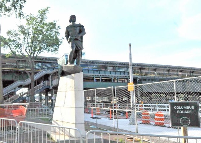 Now the call to take the monument down has gained the support of Councilman Costa Constantinides (D-Astoria), and some civic leaders, under the condition that it be replaced with another Italian-American figure. For the past month, police have barricaded the statue in Columbus Square. Passersby have noticed the near-constant presence of a police cruiser hovering next to the memorial.