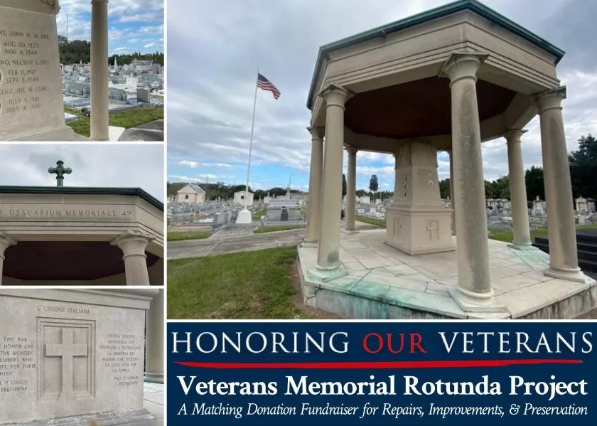 The L’Unione Italiana Cemetery is filled with a rich, cultural history unlike any other, with hundreds of visitors to the property each year. For decades, our Veterans Memorial Rotunda, located along the southern edge of the property, has stood to honor the countless men and women who have served our country since its construction in 1949. Dedicated under past president and long-time club member, Paolo Pupello Longo, the rotunda, stands “to honor and perpetuate the memory of those members who gave their life for their country”.