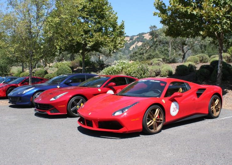 It’s not surprising on any given weekend to see a variety of exotic cars parked along the main drags in Calistoga, St. Helena, or Yountville in the Napa Valley. What is surprising is to see 40 Ferrari sportscars in a resort parking lot. The occasion was an event put on by the Italian sports car maker to give its loyal and select clientele a chance to view its new vehicles, and enjoy each others’ camaraderie.