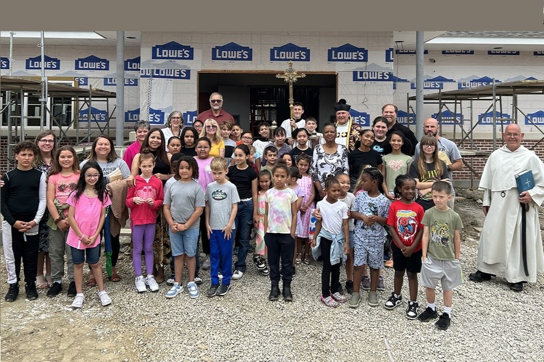 It was with great joy that Fr. James Mayer, O.de M., Pastor of St. Rocco parish and school in Cleveland, blessed the newly placed building cornerstones on June 5, as major, campus-wide construction projects near completion. School students and staff were on hand to celebrate this important milestone. Thanks largely to a generous donation from Tom Jeckering, and with the support of St. Rocco parishioners, St. Rocco School staff and students are counting down the days until the start of the new school year when they return to the renovated campus.