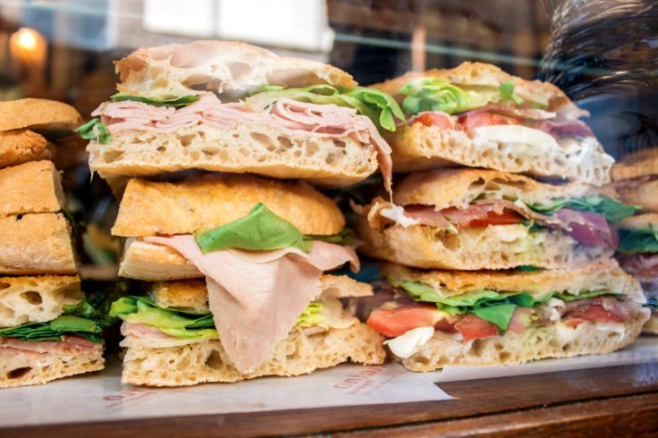 The shop, opening adjacent to Copley Square on Boylston Street, is heralded for its sandwiches served on fresh-baked Tuscan schiacciata bread. This is a massive, super doughy bread with a gleaming crusty exterior that is incredibly light and airy, yet holds its structure, making it the perfect base for a sandwich.
