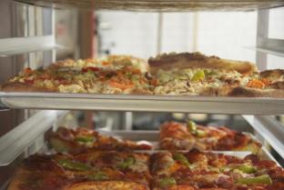 Stephen Lanzalotta makes what he calls Sicilian "slab" pizza, bubbly slices of a lofty, rich, but light-textured crust topped with a thin layer of smooth, sweet tomato sauce and channels of gooey cheese.