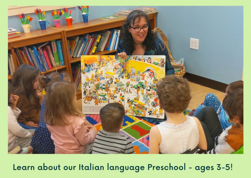 Please join us for our Preschool Open House on March 11 from 10:00am – 12:00pm, to learn more about our part-time Italian language Preschool. Although it isn’t required to pop by, please RSVP (even if you aren’t certain you’ll make it), it helps us to be prepared for how many families might attend. RSVP by emailing [email protected].