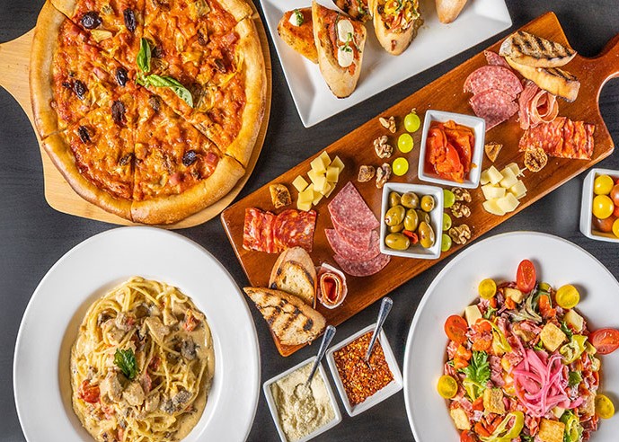 Nestled in the corner of Desert Ridge, Sfizio Modern Italian Kitchen is a cozy, dimly lit spot perfect for an intimate evening for two or a glass of wine with friends. The candle-lit environment features dark wood accents, with vibrant pops of color found throughout the space.