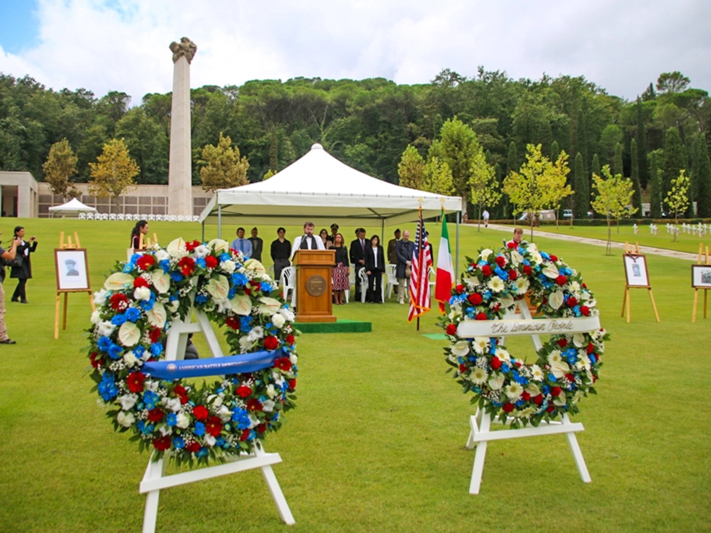 We were honored to have Daniela Ballard, Consul General of Florence, and Eryth Zecher, the Superintendent of the Florence American Cemetery, as well as the co-founders of Be the Difference-Never Again, Elizabeth Bettina, Robbie Shackelford, and Michael Wright present. The Carabinieri Band added amazing music to the event, as did the family members of soldiers buried at the cemetery.