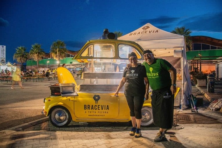 It takes imagination to look at a yellow Fiat 500 and see it as a barbecue, or rather, a grilling channel. Agnese Volpone and Maurizio Cutropia from San Giovanni Teatino certainly have that imagination – and the talent. For over fifteen years, these two Abruzzese have traveled the length and breadth of Italy to spread the word about arrosticini, a symbol of Abruzzese cuisine.