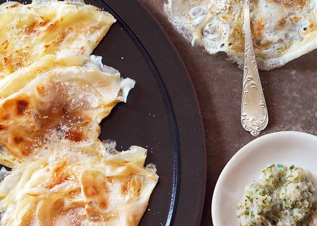 On the Apennines between Modena and Bologna is a real celebrity dish: the borlengo. It is prepared by combining flour, water and salt then poured into a large hot pan called "sole" (meaning sun), greased with pork rind. After a few minutes of cooking it’s seasoned with "cunza", which is ground lard with pancetta, garlic, and rosemary. Not exactly the essence of lightness, but the pleasure of eating it is immense.