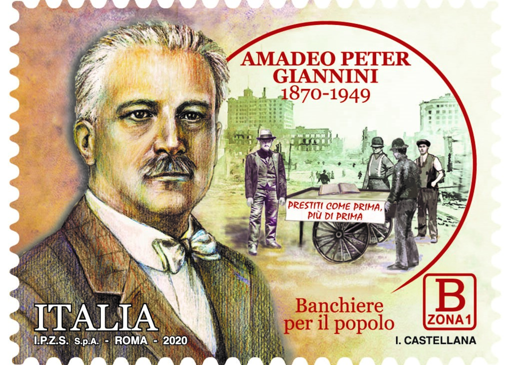 Poste Italiane comunica che oggi 25 novembre 2020 viene emesso dal ministero dello Sviluppo Economico un francobollo commemorativo di Amedeo Peter Giannini relativo al valore della tariffa B zona 1 pari a 1,15€. Tiratura: seicentomila esemplari. Foglio da quarantacinque esemplari Il francobollo è stampato dall’Istituto Poligrafico e Zecca dello Stato spa, in calcografia, su carta bianca, patinata neutra, autoadesiva, non fluorescente.