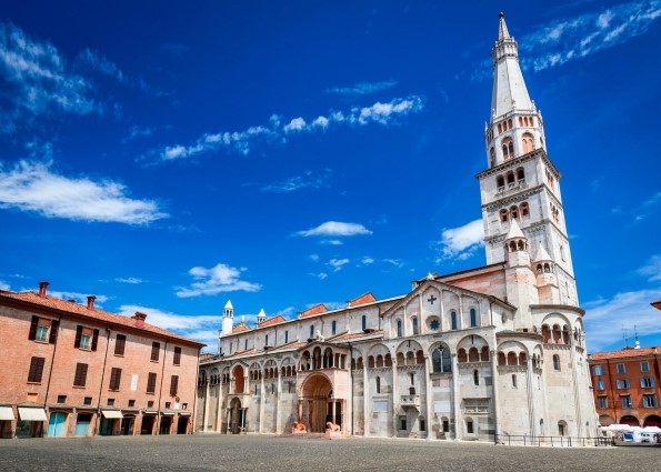 “The magnificent 12th-century cathedral at Modena, the work of two great artists (Lanfranco and Wiligelmus), is a supreme example of early Romanesque art. With its piazza and soaring tower, it testifies to the faith of its builders and the power of the Canossa dynasty who commissioned it.”