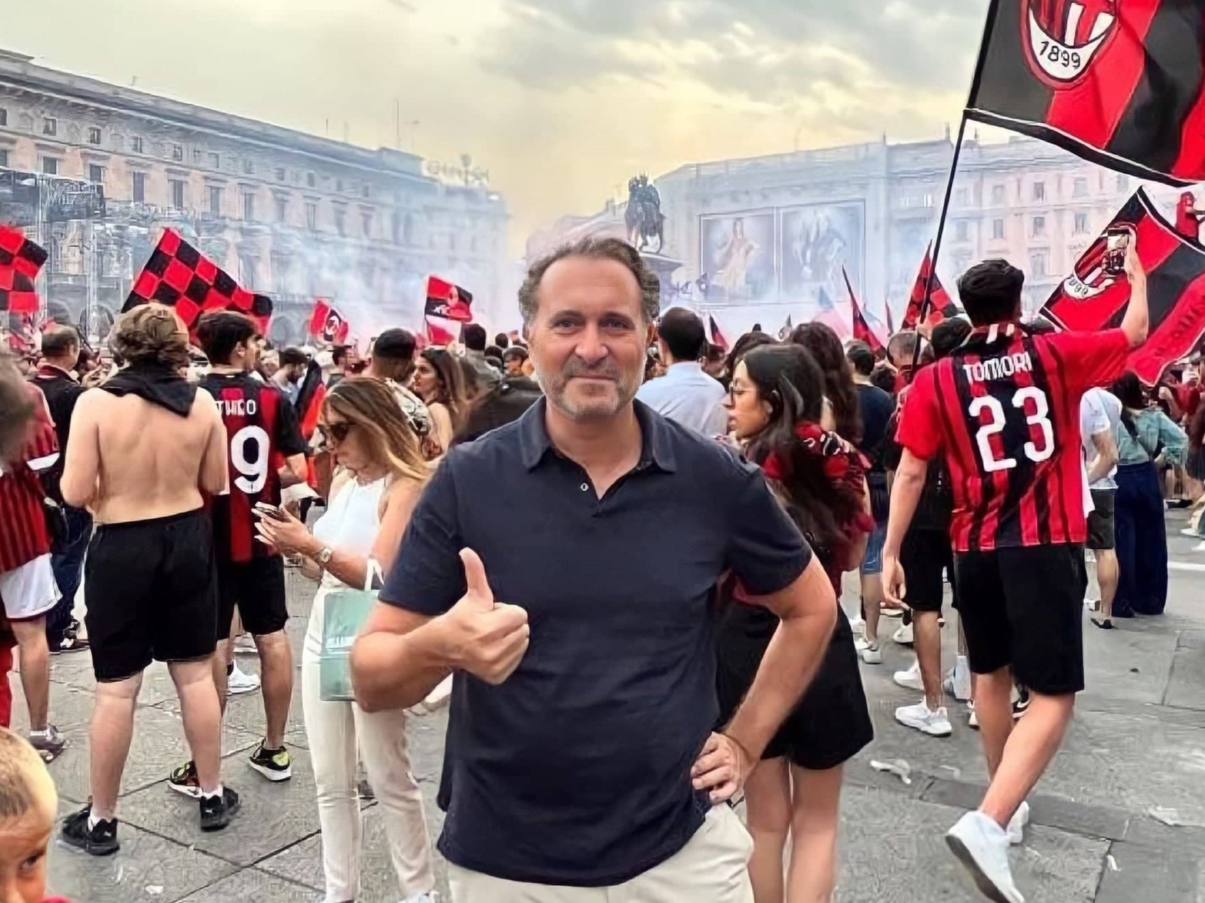 As they peered through the smoke from lit flares, fans of the Italian soccer team AC Milan dancing beneath the towering Italian gothic cathedral in the city’s Piazza Duomo may have noticed a tanned 56-year-old Italian American who didn’t quite look like he belonged.
