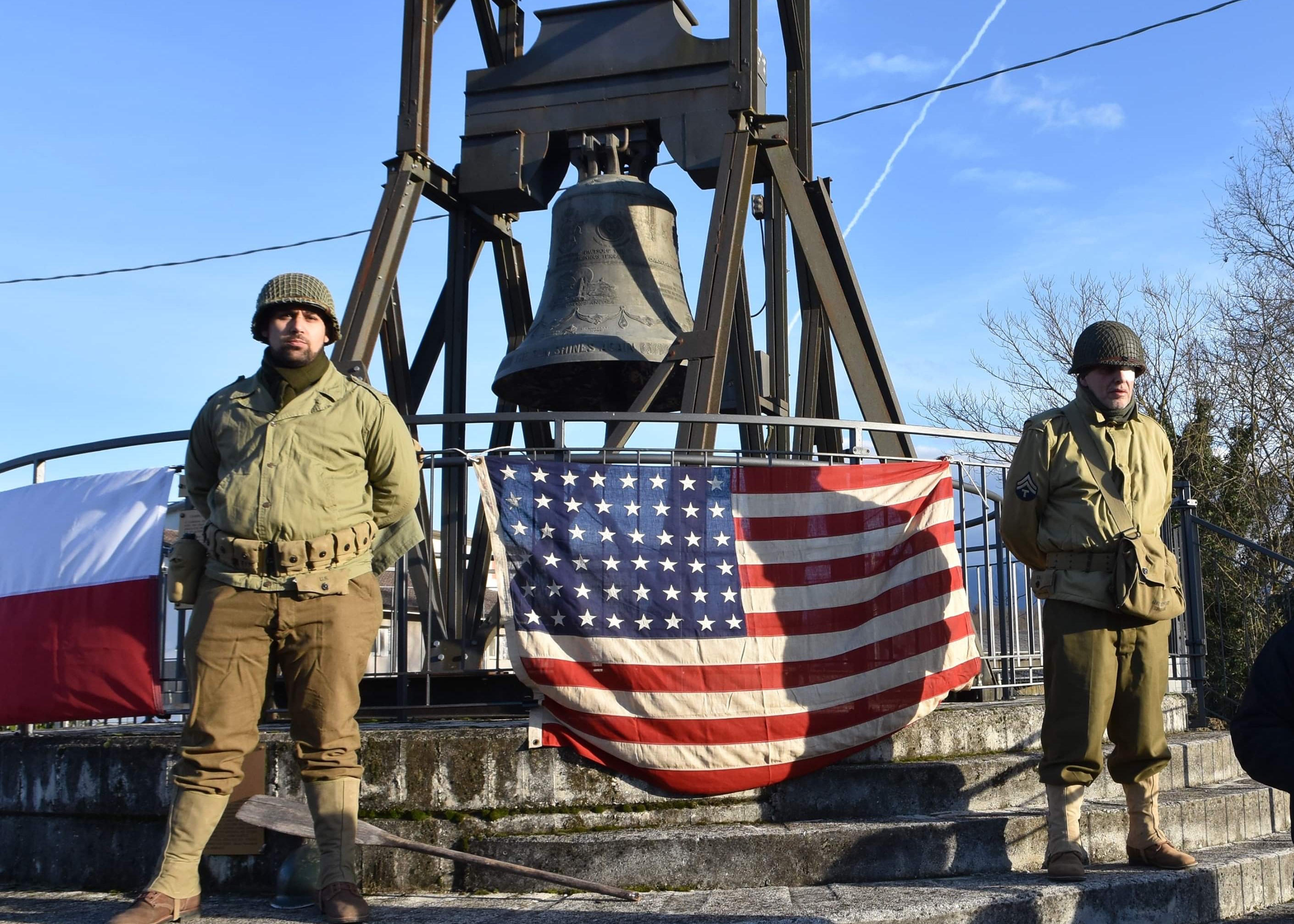 In the same spot where hundreds of soldiers met their fate during a operation to draw the entrenched Nazi army away from a planned landing in Anzio, visitors and residents gathered and prayed, as a priest blessed the area. A short time later, in a salute to the Texas troops, those in attendance each tossed a single yellow rose into the swirling waters. Then a lone bugler played ‘Taps,’ and the town’s ‘Peace Bell’ rang out, over the roar of the dark, rushing river.