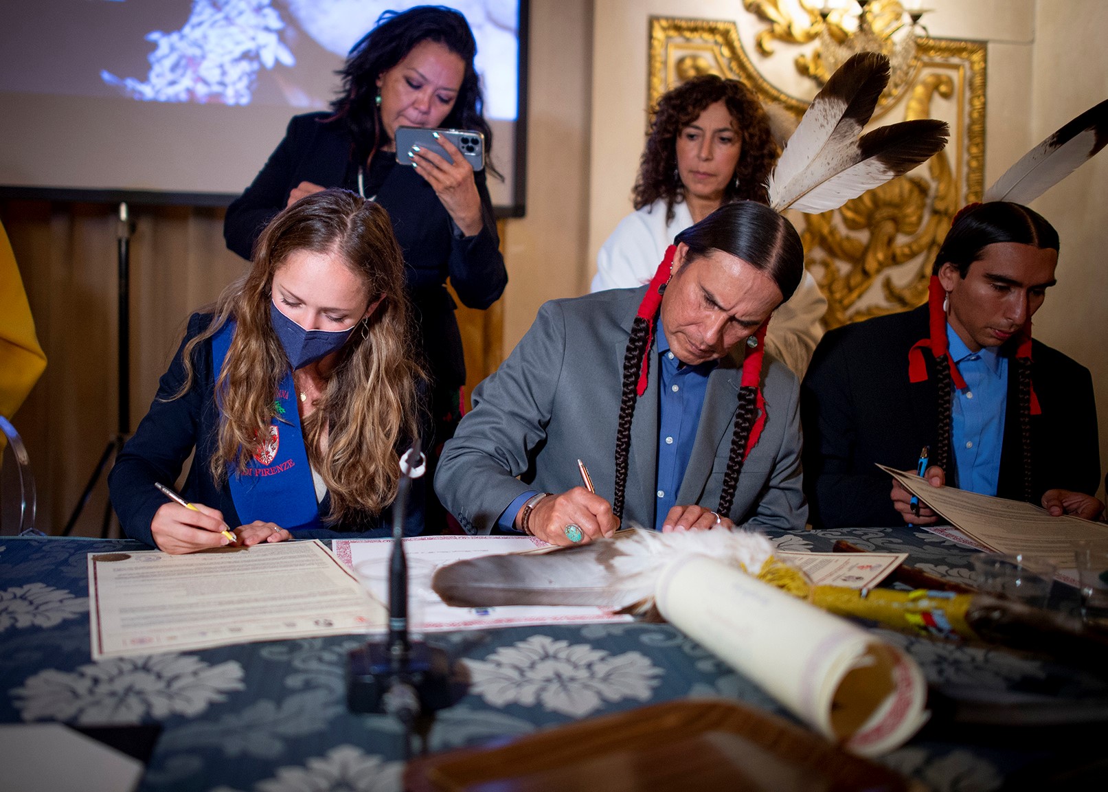 Crucial was also the presence of Ragini Gupta, Consul General at the Consulate General of the United States of America in Florence, who acknowledged the errors of the USA in the management of relations with the natives, not only in the centuries of colonization, but also in more recent times, marked by the failure to respect the many promises made to the natives segregated in the reserves. Unexpected, resounding and welcome was the Consul's gesture of signing with the others the protocol of friendship and recognition of Lakota sovereignty.