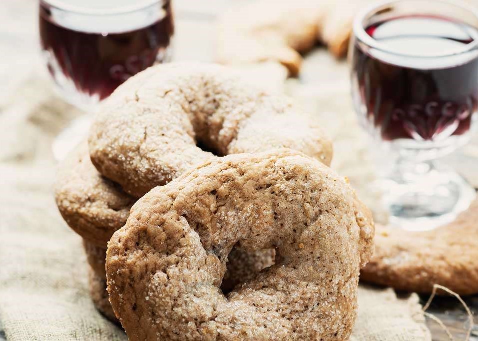These crunchy, somewhat-hard ring-shaped cookies originally were made for those who traveled far from home as they could hold up for long trips and easily be softened when dunked into wine or water. My kind of cookie indeed. The ingredients are simple pantry staples that make these really easy to pull together if you have wine leftover from the evening before – which in our house is a very common occurrence.