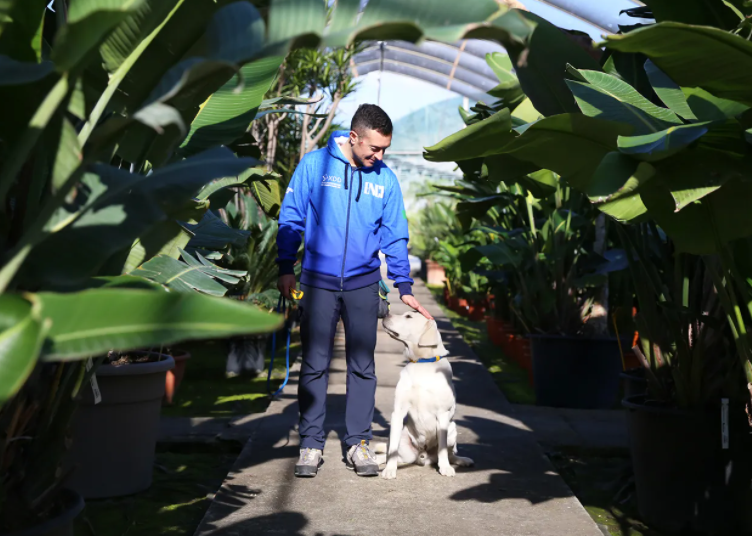 On a sunny winter morning, the dog trainer Mario Fortebraccio slowly bends toward a line of potted olive trees and indicates it with his hand. Waiting for that signal, Paco, a three-year-old white Labrador, rushes through the row of plants with his head tilted, sniffing each pot at the root, the rhythm of his inhaling echoing through the greenhouse. The dog is carefully scouting for something humans can't sense.