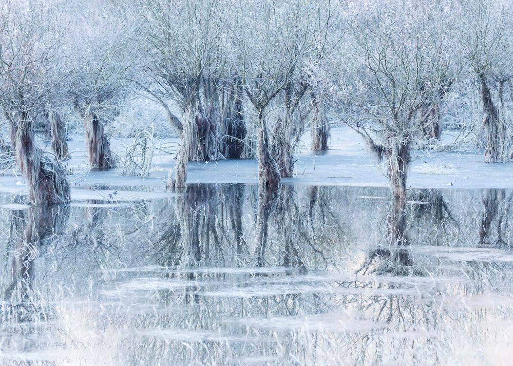 When Italian photographer Christiano Vendramin visited Santa Croce Lake in northern Italy in 2019, he noticed the water was unusually high. While the four-mile lake is bustling with action in the warm summer months, it lays dormant in winter. Icy storms had blanketed partially submerged willow trees in snow, freezing the scene in place.