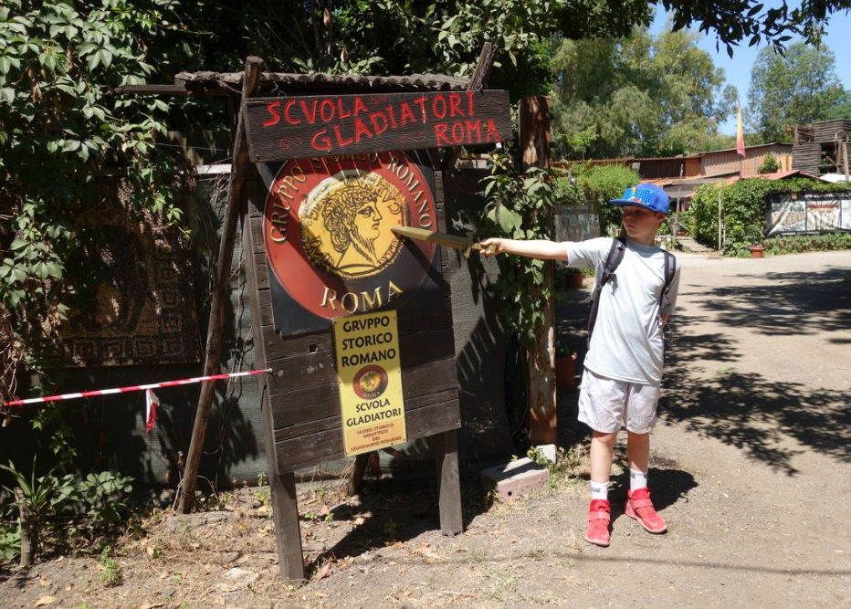 My mom and I arrived in Rome after a six-hour flight delay in Bristol, England. We were tired and stressed because we felt like we had lost time for exploring, but when we arrived at our hotel, the Queen Suites near the Piazza Venezia, right in the centre of everything we wanted to walk to, our helpful concierge presented us with a tray of wonderful snacks – sliced hot dogs, jumbo olives and bright red bitter sodas. On the bed, I found a toy sword and a story about where the gladiators come from. They knew we had come on a mission: I was going to train at gladiator school.
