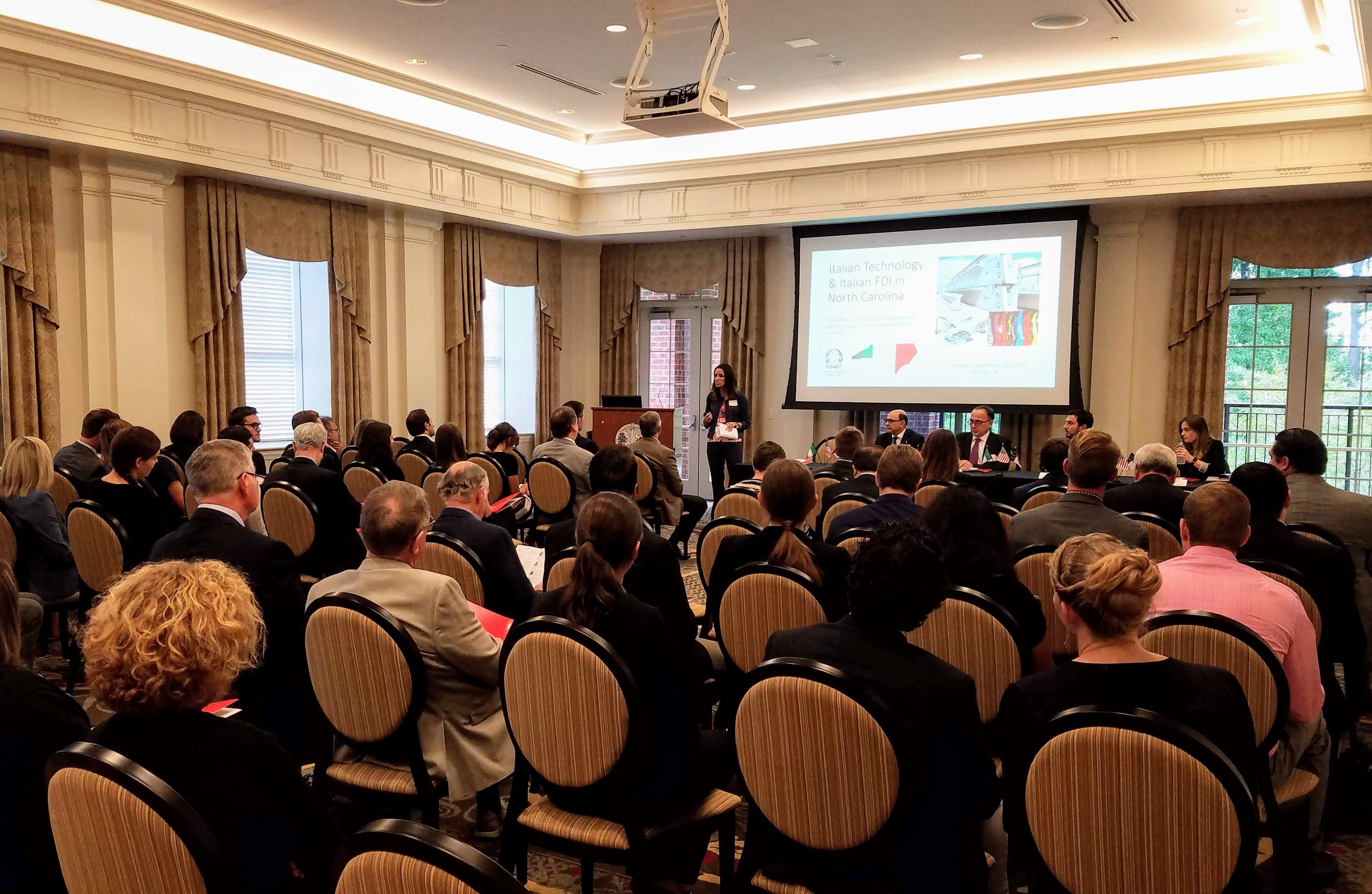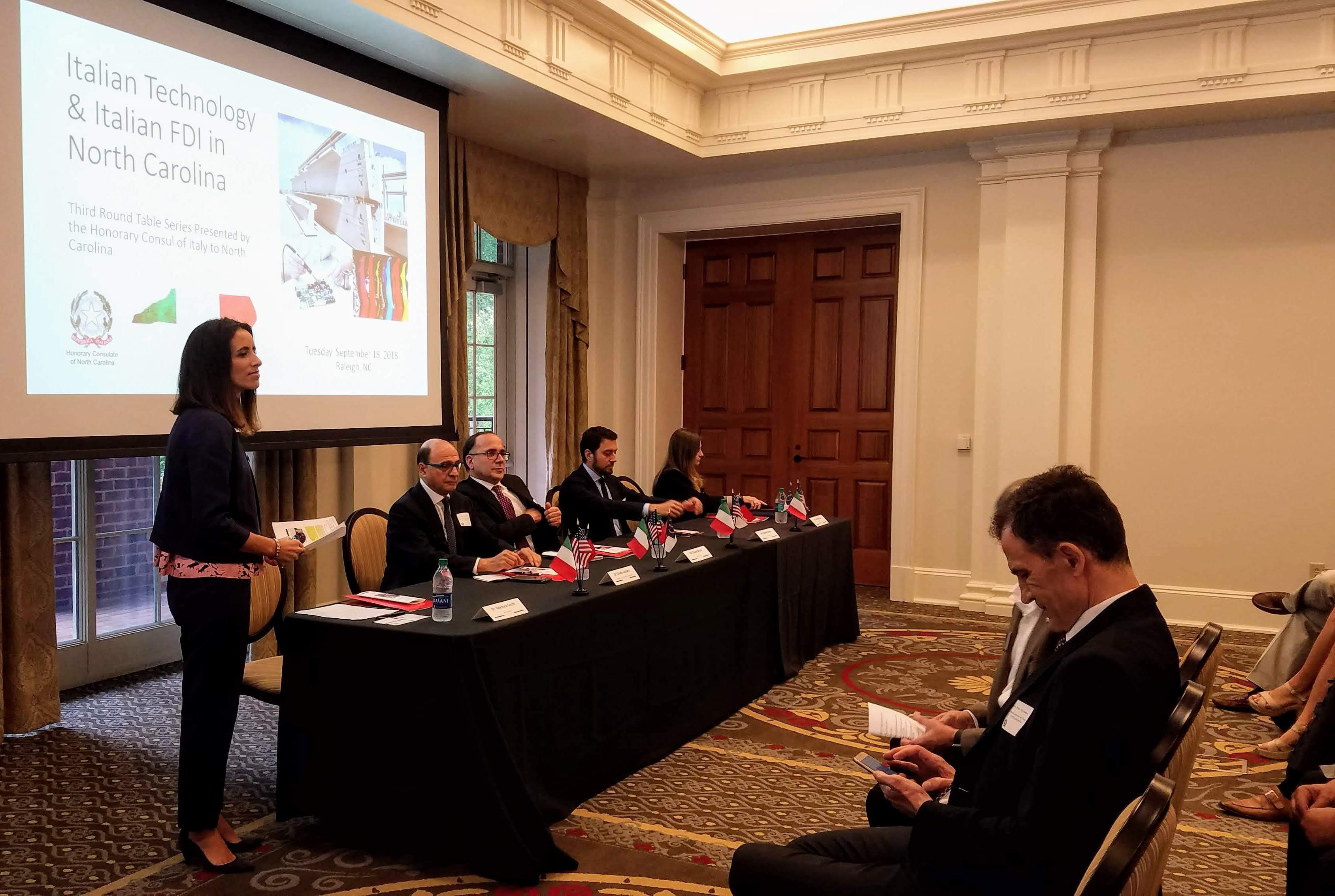 Towards this goal, since 2016 we have organized a roundtable series that focuses on Italian technology and foreign direct investment (FDI) in NC. Each year, Italian companies and researchers/academicians come together to discuss their technological advances and how they are bringing this innovation to NC. The panel is often connected by a single industry or theme, while also representing the depth and breadth of Italian investment in our state. CCI-NC also often partners with the World Affairs Council of Charlotte, for example when hosting the Italian Ambassador to the US and the General Consul of Italy in Philadelphia, who has also attended our roundtables.