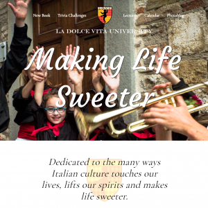 I also have a strong desire to collaborate with Italian language educators to bring La Dolce Vita University to high school and college Italian language students in order to provide an accessible window on the culture that can connect them more deeply to their language studies ... as well as to open the door to a deeper exploration of Italian culture. This is how we keep the culture alive and vital.