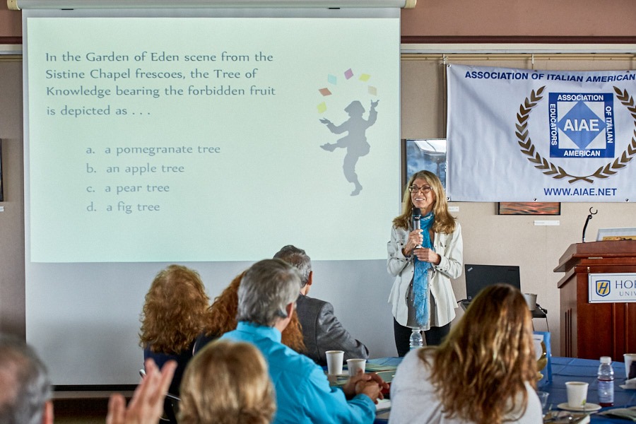 In una sfida di La Dolce Vita "U" trivia, i partecipanti possono "testare" le loro conoscenze e, nel processo, scoprire fatti sorprendenti e poco conosciuti sulla cultura italiana. Le sfide a quiz sono divertenti e coinvolgenti, simili a un gioco televisivo come Jeopardy, e allo stesso tempo sono ricche di informazioni interessanti... tanto che quasi non ci si accorge di quanto si sta imparando. Con una scorta di dozzine di domande intriganti, ho ospitato sfide di Trivia per grandi o intime riunioni, pubblico dal vivo e virtuale, studenti universitari e delle scuole superiori, ristoranti raffinati e negozi, funzioni private e raccolte di fondi.