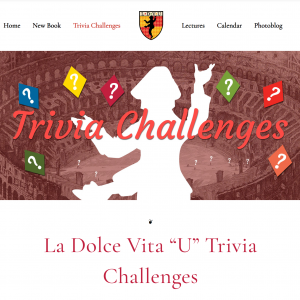 Both my trivia challenges and lectures combine “brain candy” with “eye candy” and are invitations to fall in love—or to fall more deeply in love—with Italy.