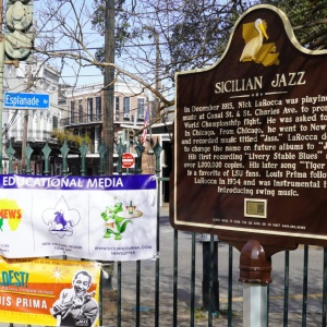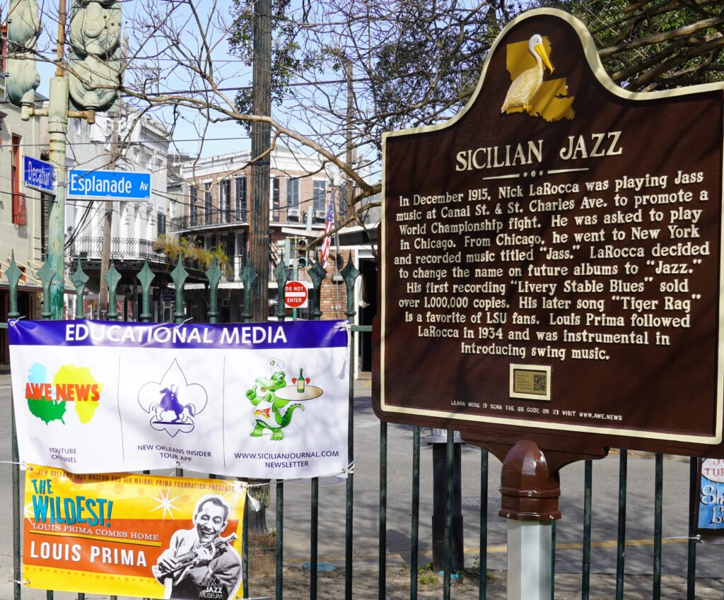 I was able to find a spot for the Italian and Sicilian contributions to music including Nick La Rocca, Louis Prima, and Cosimo Matassa at the Jazz Museum. The Jazz Museum currently has a Louis Prima exhibit and is managed by the State of Louisiana.