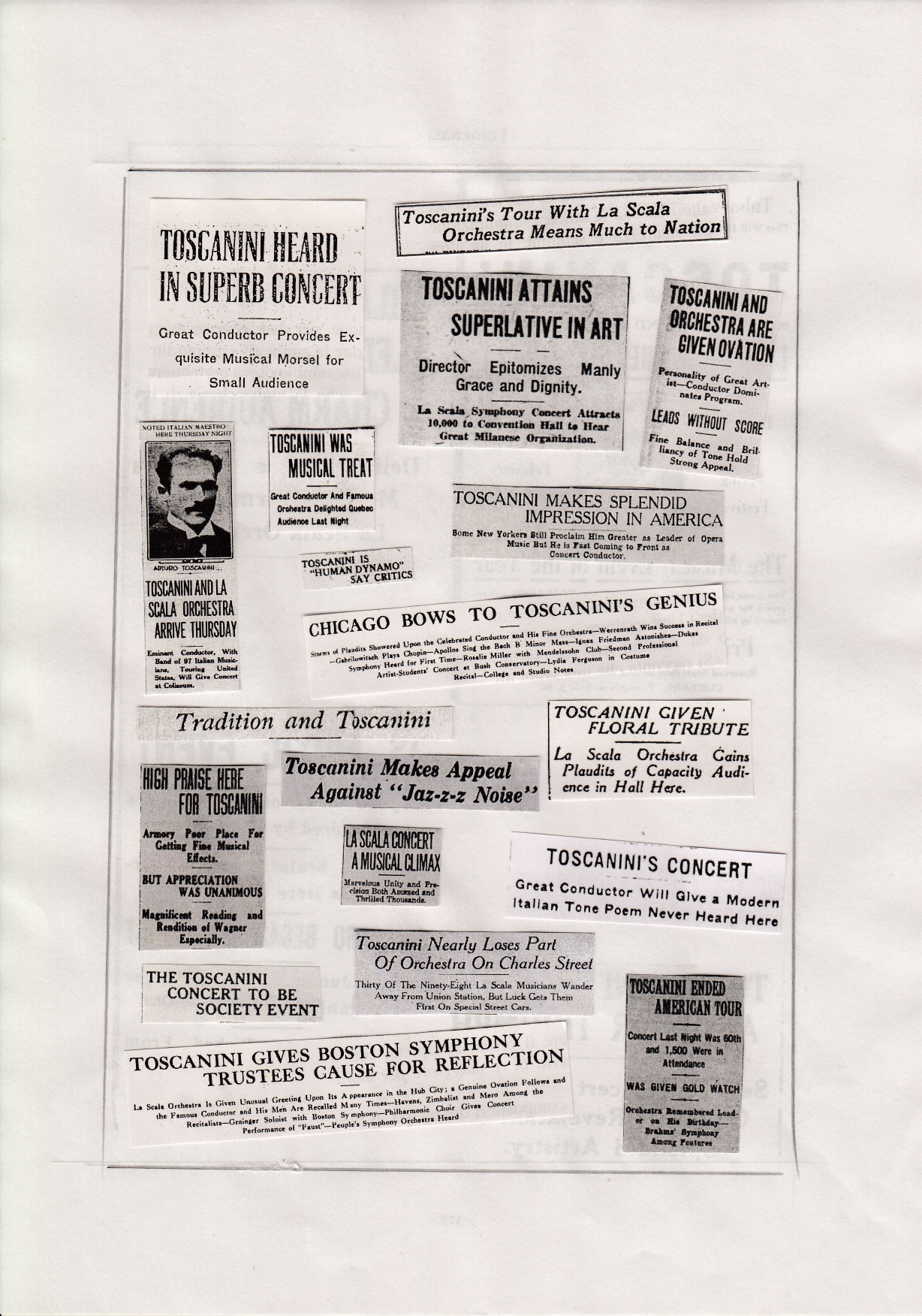 Toscanini, come si è detto, era stato l’ispiratore di queste innovazioni: era tornato dall’America quando l’Italia era entrata in guerra, e gli era stato chiesto di occuparsi della Scala, ma lui aveva risposto che la Scala era invecchiata, sembrava un museo e doveva essere profondamente rinnovata. Solo a queste condizioni si sarebbe impegnato a dirigerla nuovamente. Nell’ambito di questa ristrutturazione, che avrebbe portato poi alla riapertura del teatro nel dicembre del 1921 dopo una chiusura di 5 anni, anche se nel 1918 c’era stata una breve stagione d’opera, Toscanini fu incaricato di formare la nuova orchestra stabile. Qui si comincia a parlare della tournée e entrano in scena gli americani, che avevano salutato con disappunto la partenza di Toscanini dal Metropolitan nel 1915.