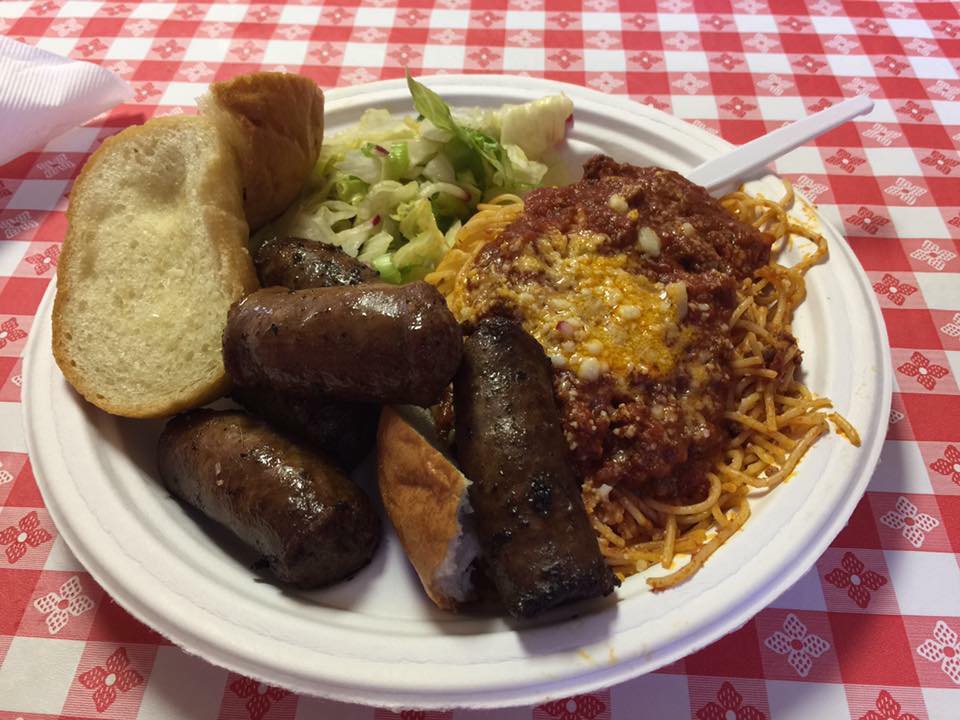 Nelle settimane precedenti l'evento, i membri della nostra famiglia parrocchiale cucinano dolci tradizionali italiani da vendere durante la festa. Il giorno dell'evento, quasi quattrocento litri di sugo di pomodoro (da una ricetta di famiglia di lunga data) vengono serviti su decine di kilogrammi di spaghetti, accompagnati da quasi quattrocento kilogrammi della migliore salsiccia italiana (anche questa è una nostra ricetta tradizionale) che si possa mai mangiare.