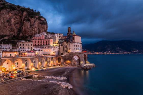 The beach that surrounds Atrani is the wonderful scenery that surrounds the Borgo that, with its tiny houses built on top one of the other, looks like a nativity scene, especially at night with the glimmering lights. In daytime, the tiny streets seem to disappear behind the houses only to reappear suddenly, widening into a small square, where the l...