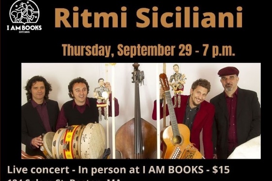 Thursday, September 29, 2022. 7:00 PM – 8:00 PM EDT. I AM Books - 124 Salem Street - Boston, MA 02113. This is a ticketed event with limited seating. Please purchase your tickets here. Join I AM Books for an evening of traditional and modern Sicilian music with I Beddi! "Di folk in folk" is a performance with sounds, songs, lyrics and tales belongi...