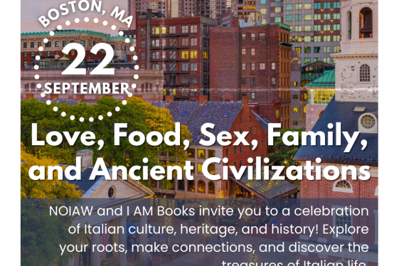 Thursday September 22, 2022 — 6:30 p.m. EST. I AM Books, 124 Salem St., Boston MA 02113. Register Here. NOIAW (National Organization of Italian American Women) and I AM Books invite you to a celebration of Italian culture, heritage, and history. Award-winning author Linda Cardillo returns to Salem Street (her home once upon a time and the setting f...