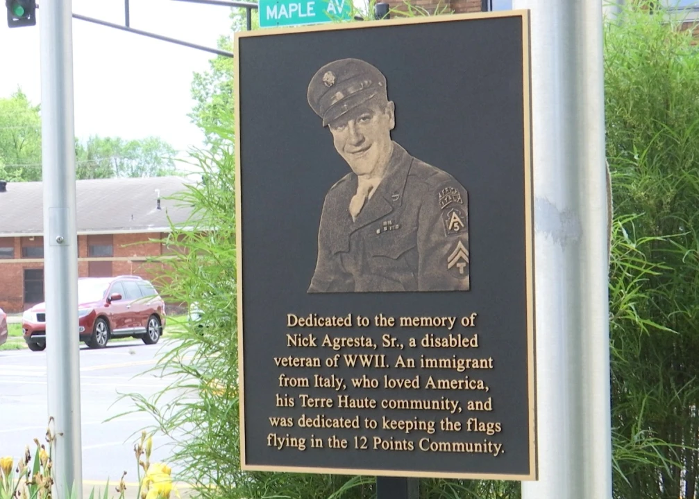 Gold Medal Plaza has welcomed a new Dedication Bronze Plaque to the park Saturday in Terre Haute, IN. The Dedication Plaque is in honor of late Italian Immigrant Nick Agresta Sr. who served in World War 2 and raised his family in 12 Points. 12 Points is where Nick continued to show support and patriotism post war by selling thousands of American flags throughout the Wabash Valley.