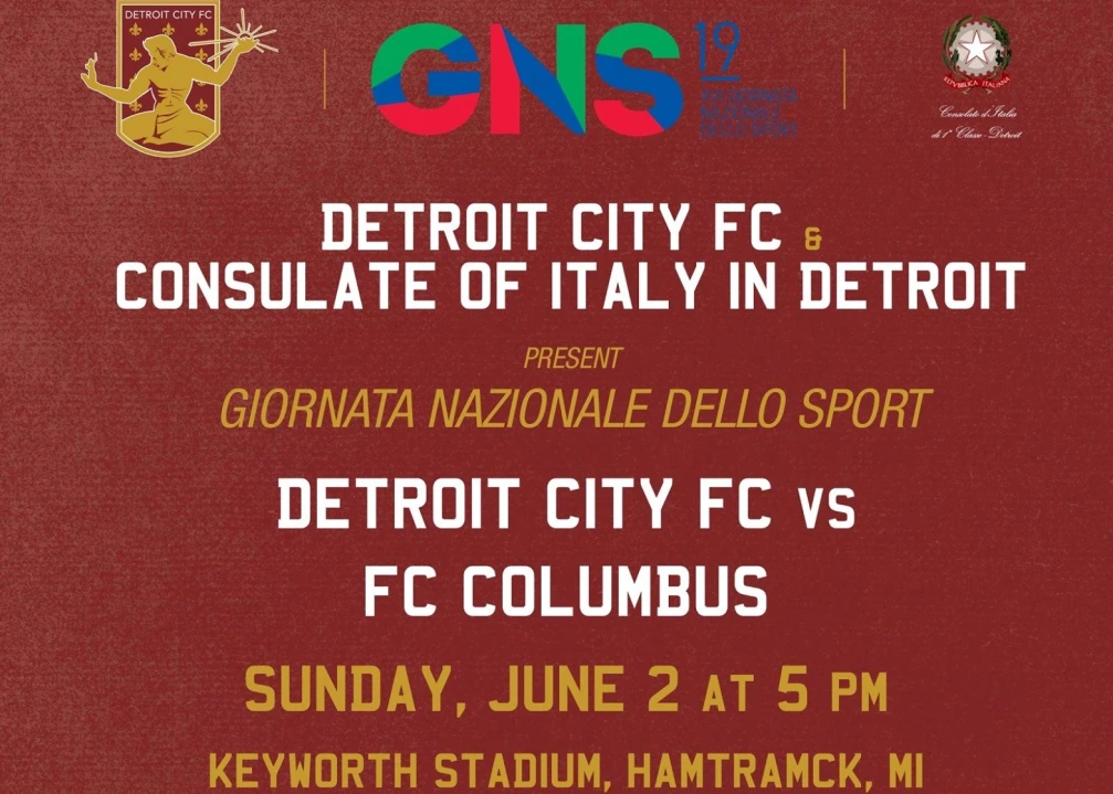 Join us on June 2 for the 2019 Giornata Nazionale dello Sport! The first Sunday of June, the Italian National Day of Sport is celebrated in Italy and all over the world. The Detroit City FC is joining the Consulate of Italy in Detroit in celebrating the event!