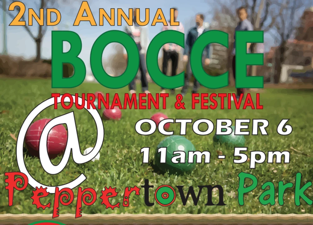 The second annual Bocce Tournament and Festival will be held from 11 a.m. to 5 p.m. at Peppertown Park on October 6, where Berkeley Heights newest Bocce Champions will be crowned. In the spirit of the Italian Heritage of Peppertown Park, come join us for a day of Bocce, Italian food, fun and games including corn hole and a 50/50.