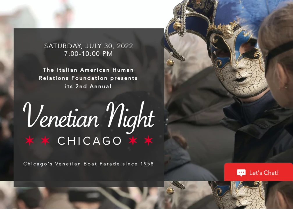 The Italian American Human Relations Foundation in Chicago presents its 2nd Annual Venetian Night Boat Parade on the Chicago River. Join us for Chicago's Famous Venetian Night and honoring Secretary of State Jesse White. Chicago's Venetian Night brings the charm of the famous Venice boat parades along with decorated boats, entertainment, and a grand fireworks display.