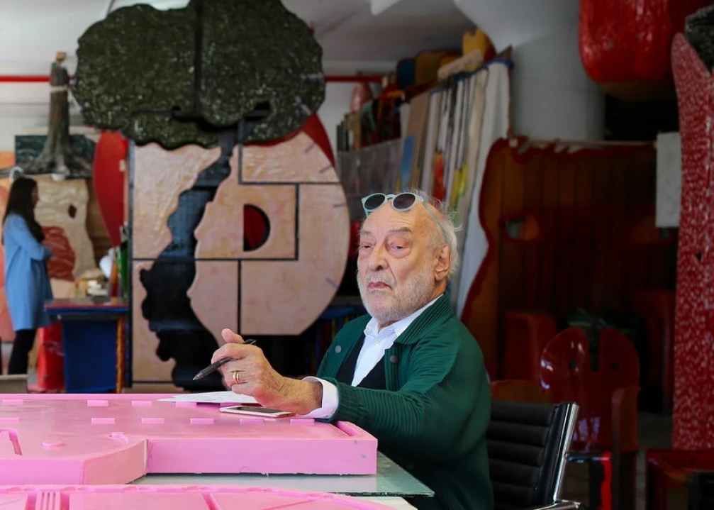 Walking into Italian architect Gaetano Pesce’s studio in the Brooklyn Navy Yard, the first thing you notice is the smell: wet paint. “Sorry about that,” his studio assistant says. “We’re finishing the structure for this cabinet—Sole.” Just as quickly, your other senses kick in—music thumps and machines buzz.