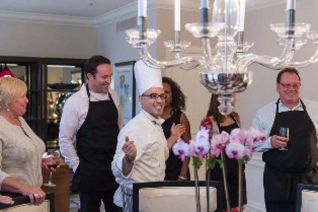 The Chef's Culinary Tour is a progressive dinner that has a little bit of everything. It starts in the kitchen with a glass of bubbly. Guests have to sign a waiver, as they'll be doing a bit of cooking later. It's no fun to give all the secrets away, so we'll just say on the way to your first course, you'll make a brief stop for a guessing game.