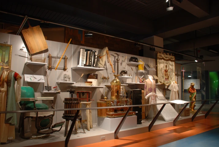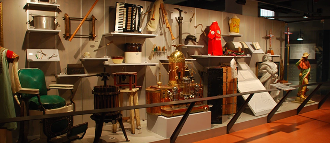 The display gives you a good overview of what is in the collection, what topics we have collected about, such as the religious and spiritual life of the Italian Americans, domestic life, skilled and unskilled laborers, Italian American foodways, etc. The three dimensional items that are not on display live in the museum storage with the rest of our artifact collection and all our archival items (papers, photographs, and audio recordings) are housed in the Detre Library & Archives.