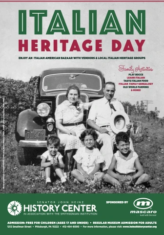 The Italian American Program was founded in 1990 and is dedicated to preserving and interpreting the history and culture of Italian Americans in Western Pennsylvania. We do so through exhibitions, educational programs, publications, and community outreach. We began this program at the urging of prominent members of our local Italian American community, who recognized that the history of Italian Americans was deeply embedded within the history of Western Pennsylvania and chose to base the program within the Historical Society of Western Pennsylvania (we operate as the Senator John Heinz History Center today). By having the program as a part of a large institution, it assures that our history is told alongside the other histories from our region and is not separated from general American history.
