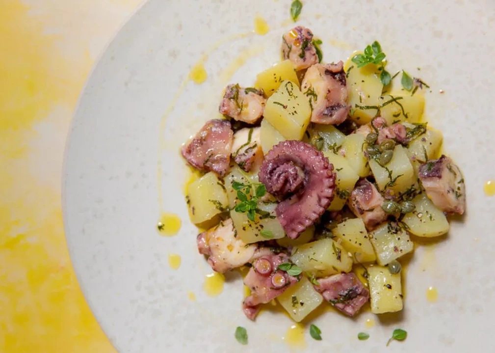 The current “Bisato at Home” menu includes a three-course dinner for two, with choices of lasagna al forno, eggplant parmesan, or Venetian-style octopus as a main dish.