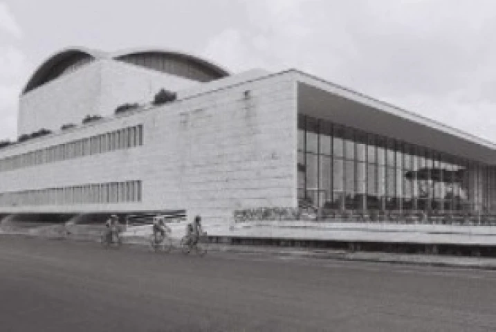 In the private buildings there are balconies and projecting roofs that liven up the central block, creating variations in mathematical circles on planes and polygons that change the number of their sides, varying the evolution of the facades. In the institutional spaces the size grows, making sure that the construction succeeds in squaring even the air around it, to compact and shape it in a Euclidean method. The Palazzo dei Congressi dell'Eur in Rome is a perfect example of his design; when the sky is clear, and it is not uncommon in the Italian capital, it seems to be perfectly cut out and stuck on the pure form of the building.