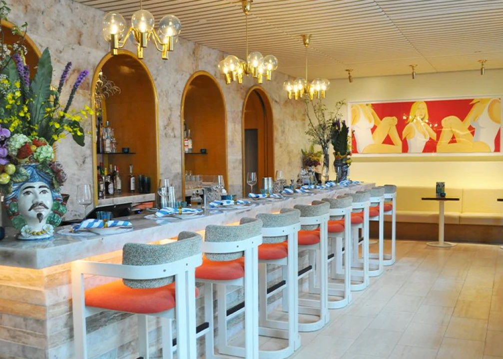 Less than a year after launching Italian restaurant Cucina Alba, New York-based Prince Street Hospitality has introduced Alba Accanto next door. Both the restaurant and new cocktail bar are situated on the ground floor of the Heatherwick Studio-designed Lantern House condo building in Manhattan’s West Chelsea neighborhood.