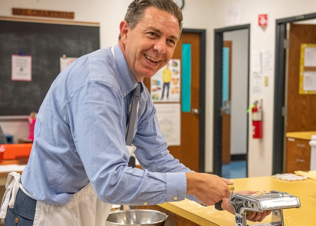 On a recent September day, Italian-born Romolo Marcoccio, who teaches math at Lewiston High School for a living, put an apron over his shirt and tie and demonstrated how to make pasta. Within minutes, he had mixed eggs and flour into a dough and sent it through a pasta machine. Ecco! Out came lasagna noodles.