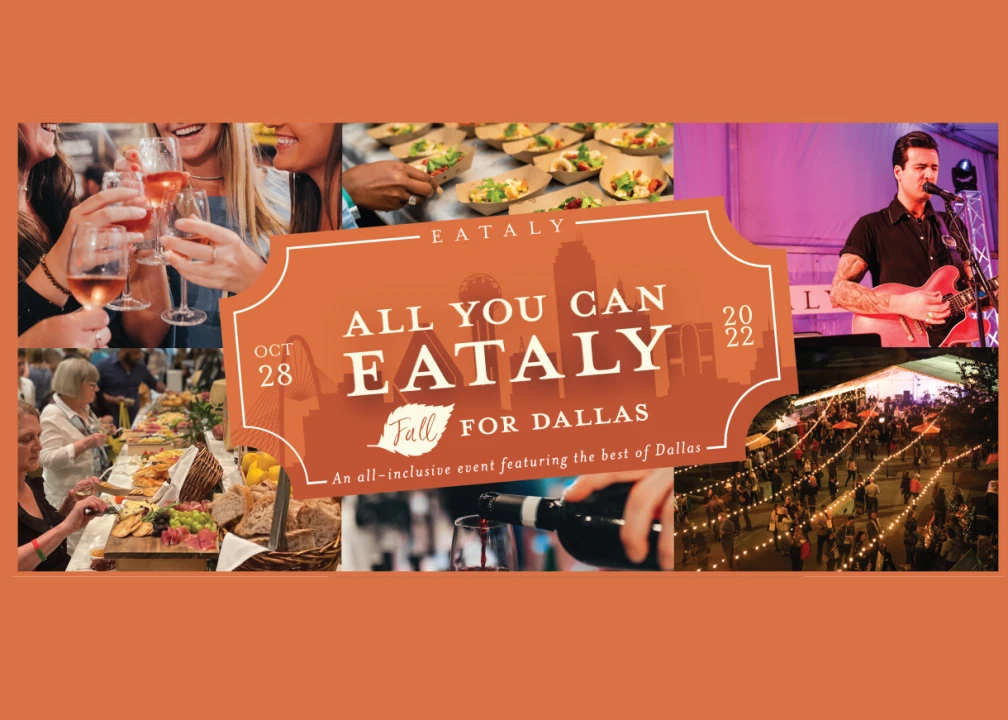 All You Can Eataly is back and this time, we’re celebrating Dallas! On October 28, we’re inviting local Dallas restaurants, bars, distilleries, and breweries to party alongside us in celebration of the city we love - get ready for All You Can Eataly: Fall for Dallas.