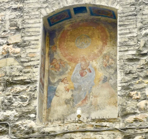 We are currently working with the Sister City Committee of San Francisco, California and Assisi, Italy. The San Francisco members have begun a fundraising campaign to “Adopt” and restore Assisi wall frescos or “Aedicula”, starting with the one on Via Frate Elia, the street leading up to the magnificent Basilica of St. Francis in Assisi. These 17th century gems are slowly disappearing with time, unfortunately. In Ancient Roman times, an “Aedicula” was a small shrine often appearing on city walls with pagan gods who would protect a house or city street. The shrine oil lamps would illuminate the very dark streets. With the arrival of Christianity, the pagan imagines were substituted with Christian ones.